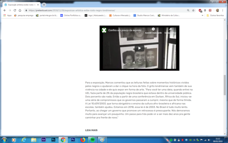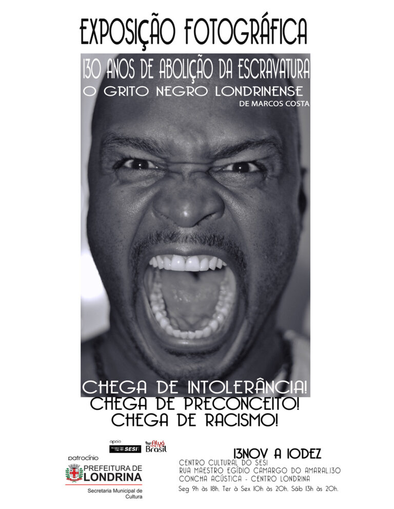 A ideia do projeto, composta de exposições fotográficas e palestras, foi marcada em 2018, de forma artística e política, o aniversário de 130 anos de abolição da escravatura. Para tal realizar uma pesquisa iconográfica e iconológica das representações imagéticas construídas de forma “desumanizada” do africano e do afrodescendente no período pré-abolição, a afirmação desumanizada porque a única referência que tais imagens possuem é o fato de que essas pessoas viviam a condição de escravizados. A prova fica por conta do fotógrafo. Somando-se a essas antigas como imagens, feitas parte da exposição fotografias de afrodescendentes londrinenses. Como símbolo de resistência, inversão de paradigma e de luta contra o racismo os (as) modelos londrinenses foram fotografados (as) exprimindo a ação de um grito. A exposição aconteceu em novembro no Centro Cultural SESI de Londrina e circulou por 10 Escolas Públicas de Ensino Fundamental e Médio da cidade de Londrina. No ano de 2019 a exposição foi realizada em mais 10 escolas Públicas da Rede Estadual de Ensino. Público Estimado: 7.850 pessoas.